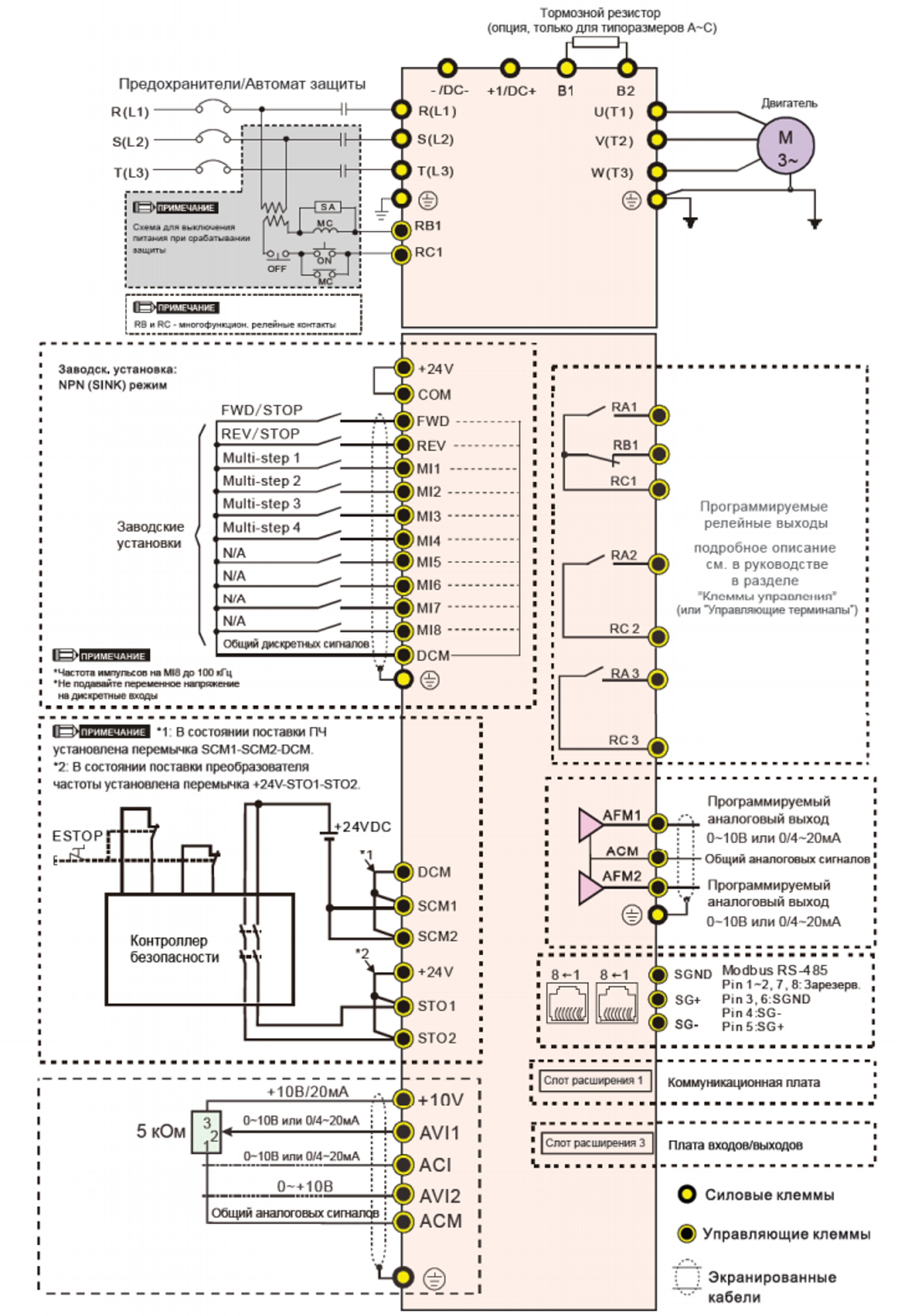 - Пожарные режимы (преобразователь частоты игнорирует сигналы аварии и продолжает работу до выхода из строя или отключения питания)