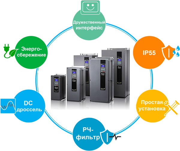 - Класс защиты IP55 NEMA12 и специальное покрытие печатных плат
