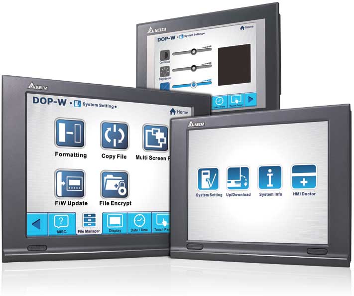 Новая серия DOP-100 обладает широкими сетевыми возможностями, такими как встроенный порт Ethernet и коммункационными функциями, включающими FTP, e-mail, удаленный мониторинг по VNC, а также NTP (протокол сетевого времени). Серия DOP-100 поддерживает авторизацию на русском языке.